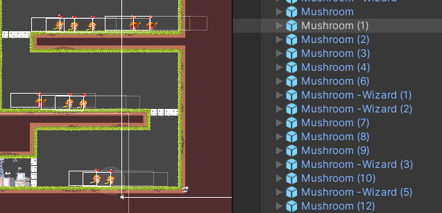 1. 널브러져있는 적들, 하이어라키에서 바로 알아보기 힘들다