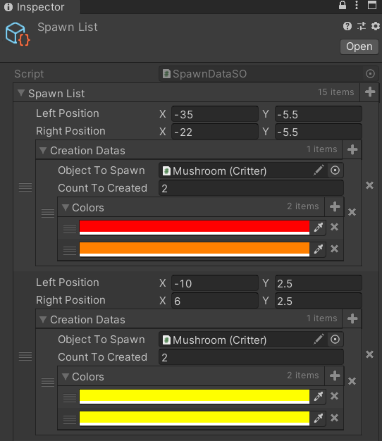 3. 생성 범위당 생성할 프리팹과 개수 설정